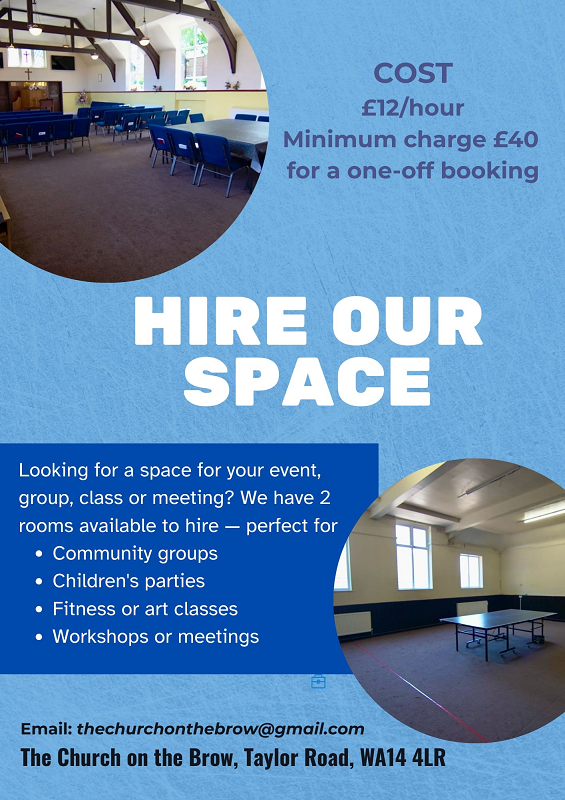 6pm at The Church on the Brow, Taylor Road, Oldfield Brow, Altrincham. WA14 4LR